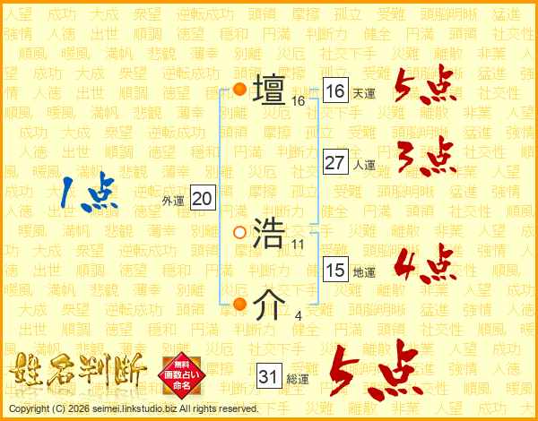 壇浩介さんの総運は31画の5点!