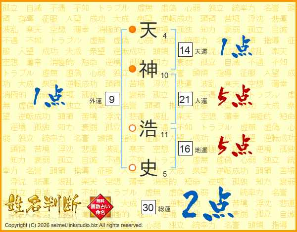 天神浩史さんの人運は21画の5点!