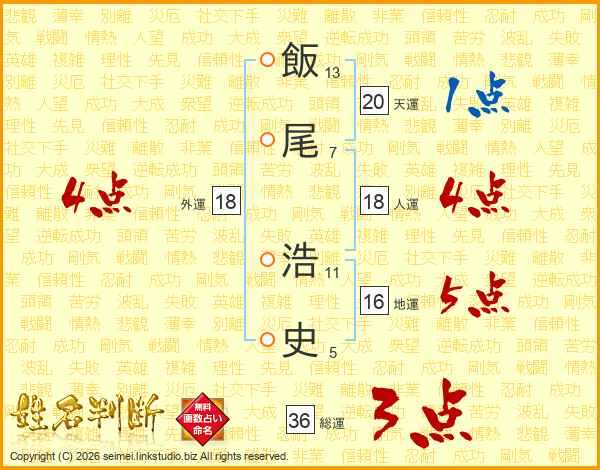 飯尾浩史さんの総運は36画の3点!