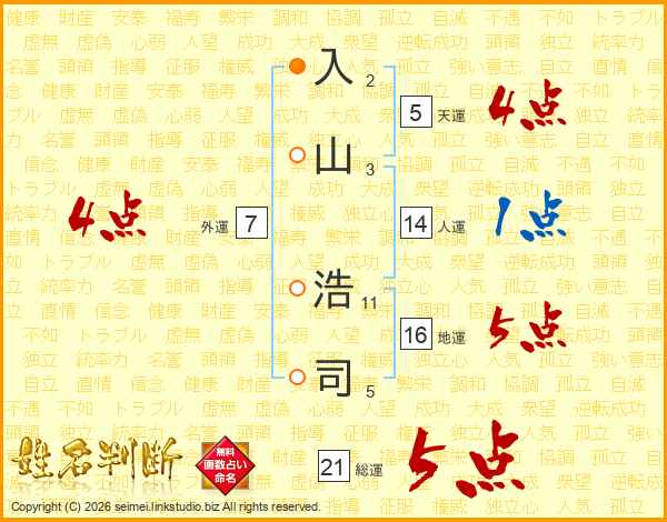 入(2画)山(3画) 浩(11画)司(5画)