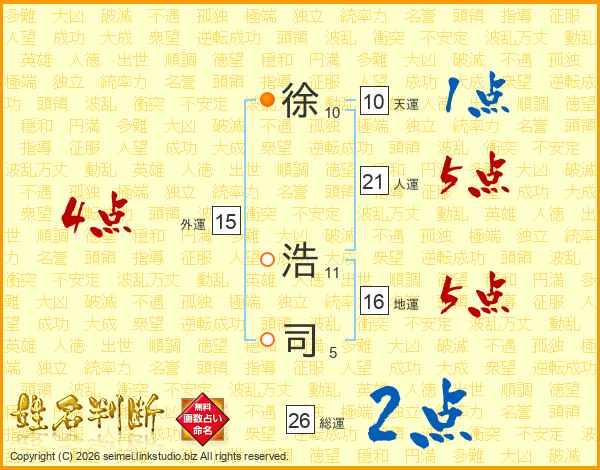 徐浩司さんの総運は26画の2点!