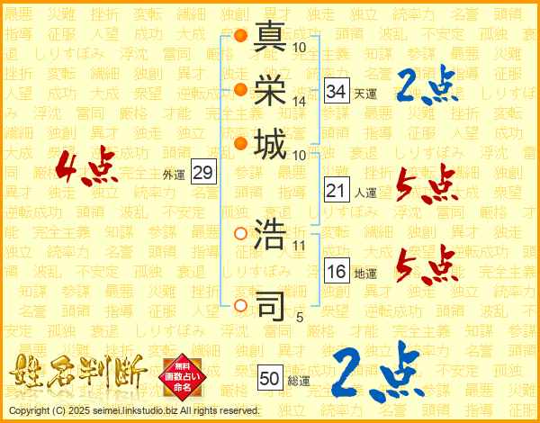 真(10画)栄(14画)城(10画) 浩(11画)司(5画)