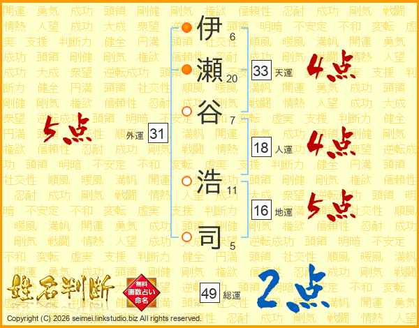 伊瀬谷浩司さんの総運は49画の2点!