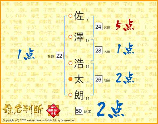 佐澤浩太朗さんの天運は24画の5点!