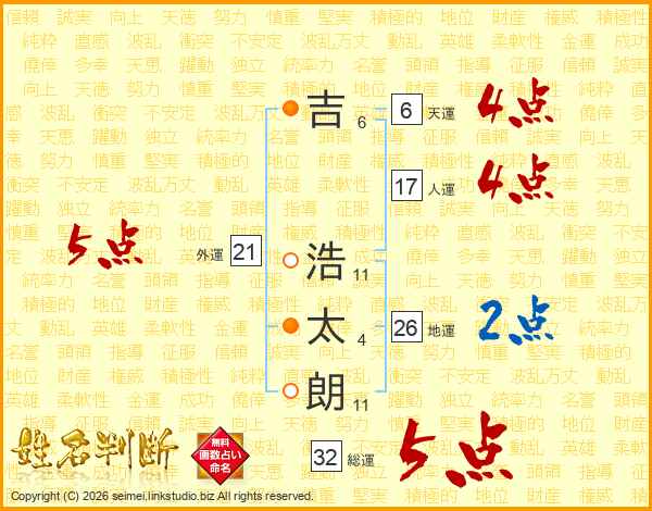 吉浩太朗さんの総運は32画の5点!