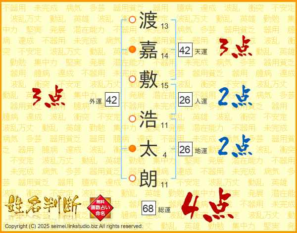 渡嘉敷浩太朗さんの地運は26画の2点!