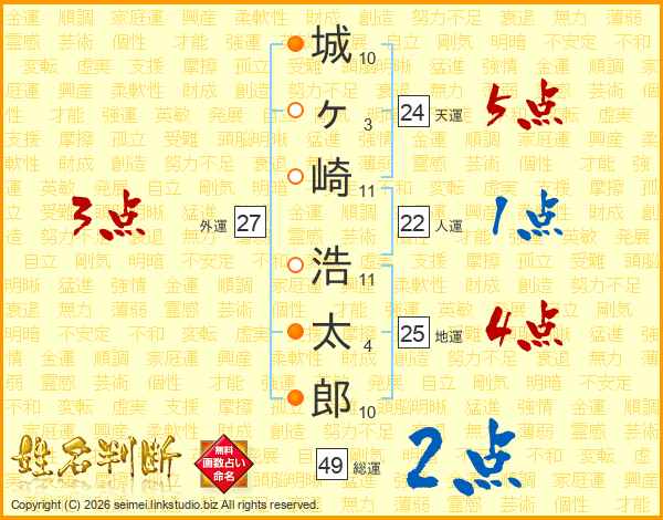 城ヶ崎浩太郎さんの地運は25画の4点!