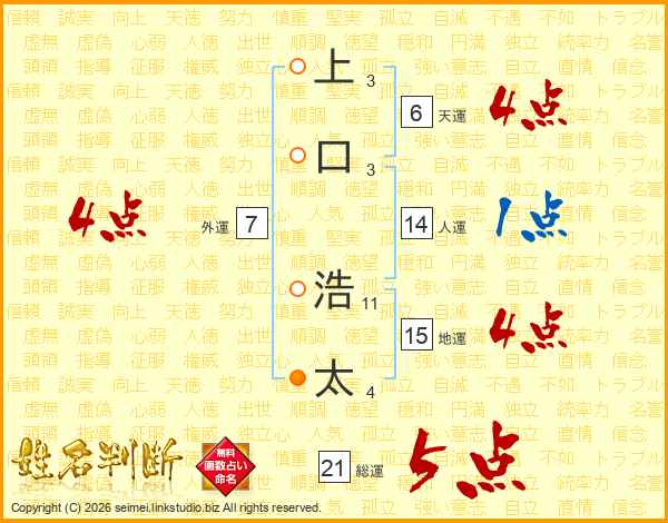 上口浩太さんの総運は21画の5点!