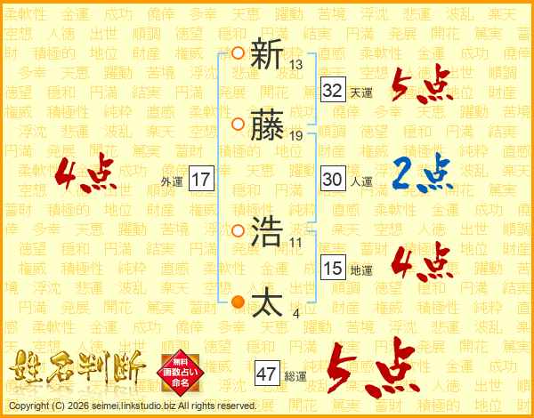 新藤浩太さんの天運は32画の5点!