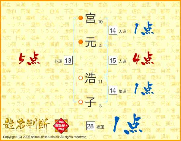 宮元浩子さんの総運は28画の1点!