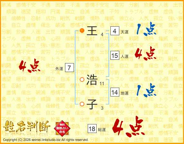 王浩子さんの総運は18画の4点!
