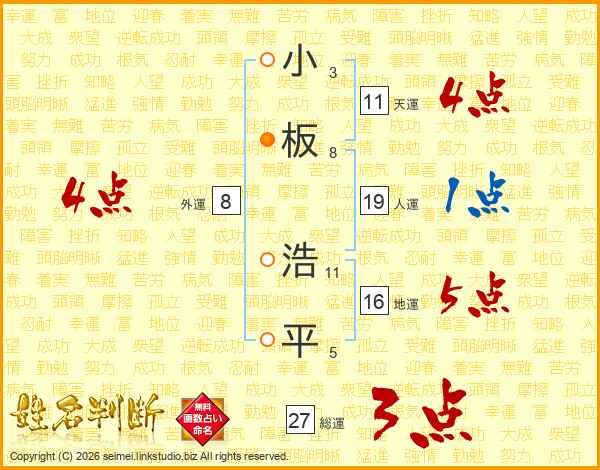 小板浩平さんの天運は11画の4点!