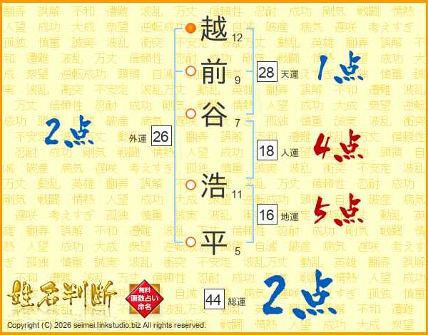 越前谷浩平さんの総運は44画の2点!