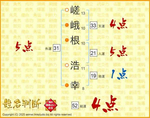 嵯峨根浩幸さんの総運は52画の4点!