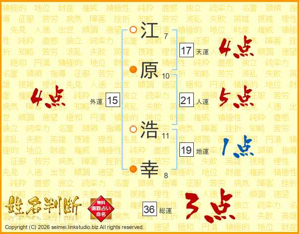 江原浩幸さんの総運は36画の3点!