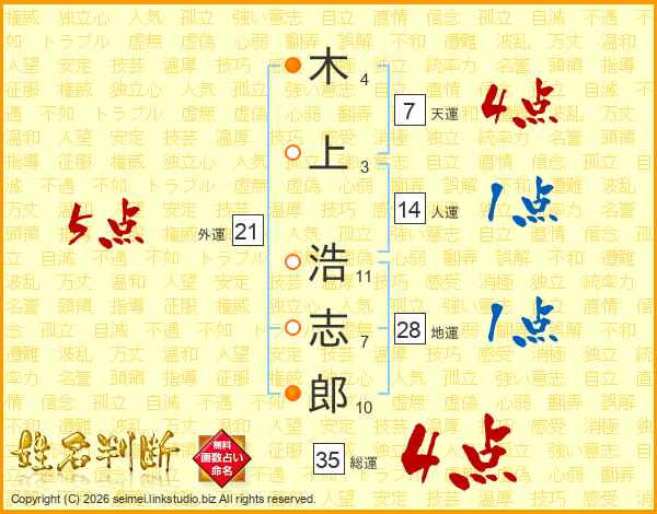 木上浩志郎さんの総運は35画の4点!