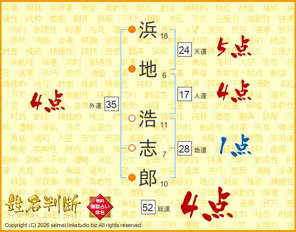 浜(18画)地(6画) 浩(11画)志(7画)郎(10画)