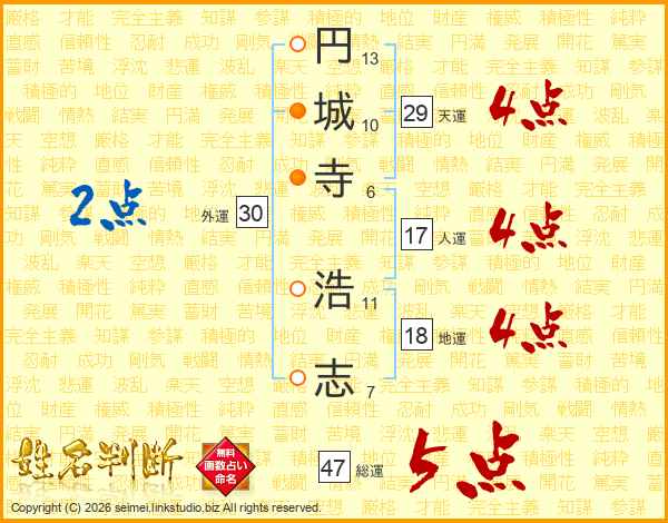 円城寺浩志さんの総運は47画の5点!