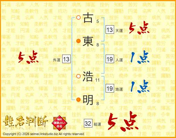 古東浩明さんの総運は32画の5点!