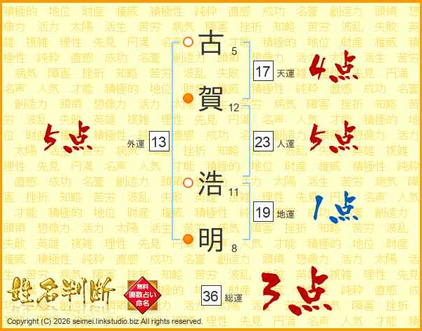 古賀浩明さんの総運は36画の3点!