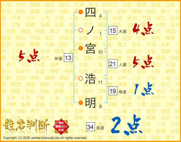 四ノ宮浩明さんの総運は34画の2点!