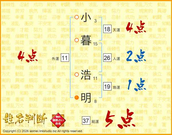 小暮浩明さんの総運は37画の5点!