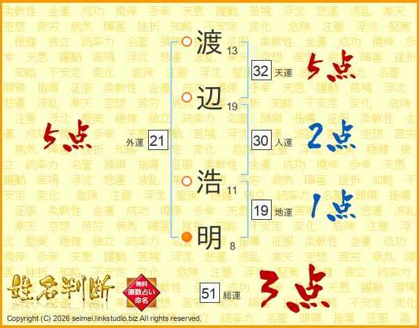 渡辺浩明さんの総運は51画の3点!