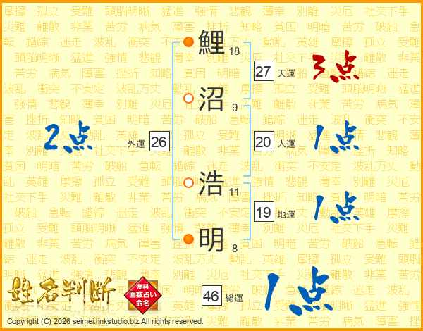 鯉沼浩明さんの総運は46画の1点!