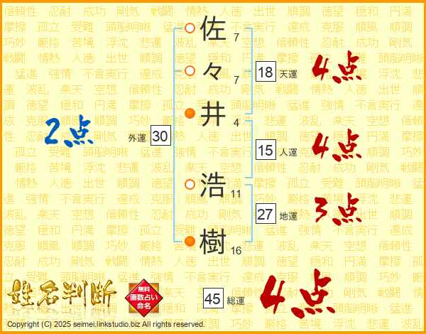 佐々井浩樹さんの総運は45画の4点!