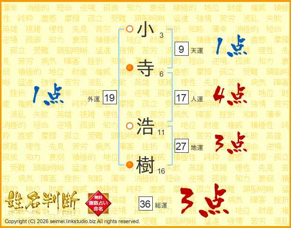 小寺浩樹さんの総運は36画の3点!