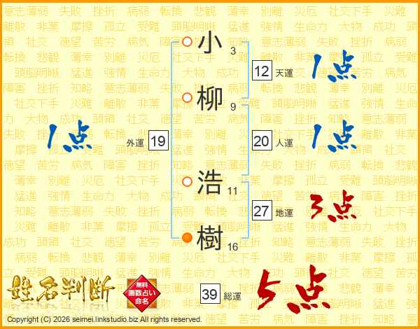 小柳浩樹さんの総運は39画の5点!