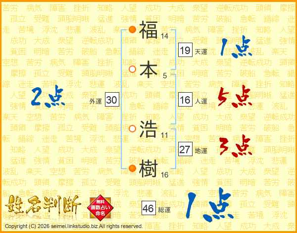 福本浩樹さんの総運は46画の1点!