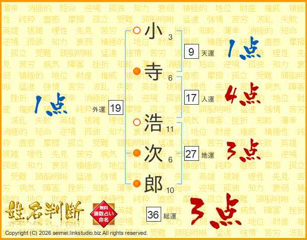 小寺浩次郎さんの人運は17画の4点!