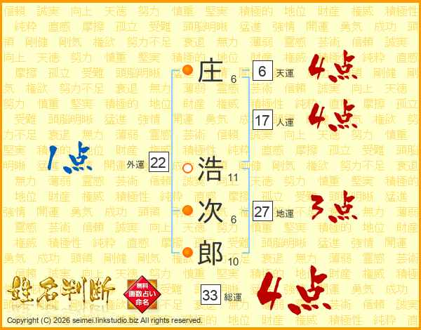 庄浩次郎さんの総運は33画の4点!