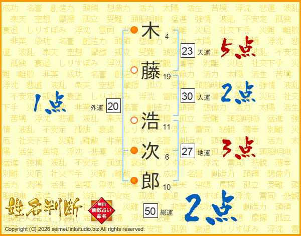 木藤浩次郎さんの総運は50画の2点!