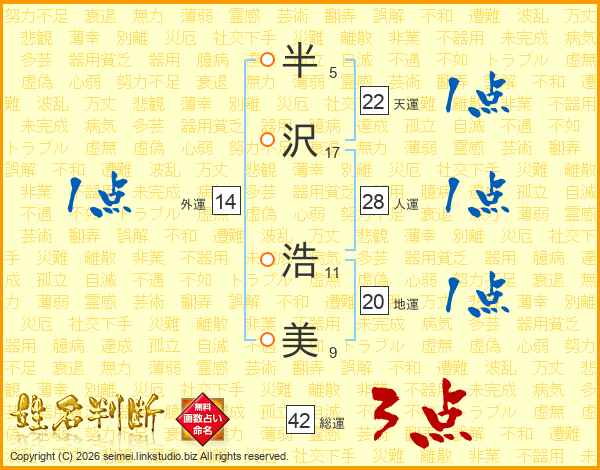 半(5画)沢(17画) 浩(11画)美(9画)