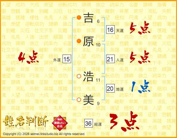 吉原浩美さんの総運は36画の3点!