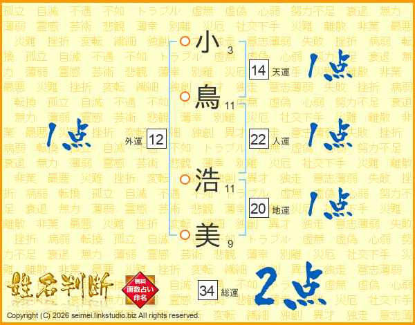 小鳥浩美さんの総運は34画の2点!