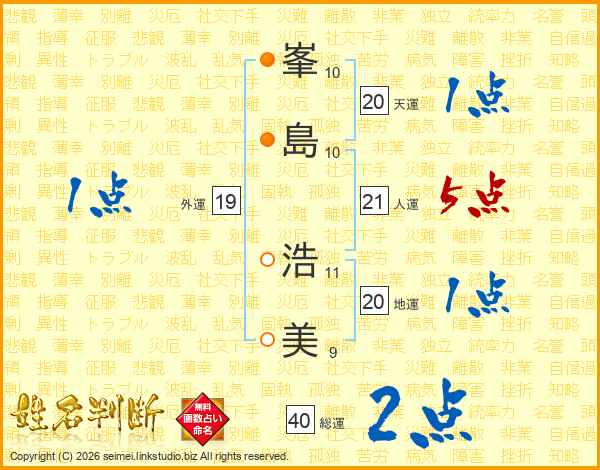 峯(10画)島(10画) 浩(11画)美(9画)