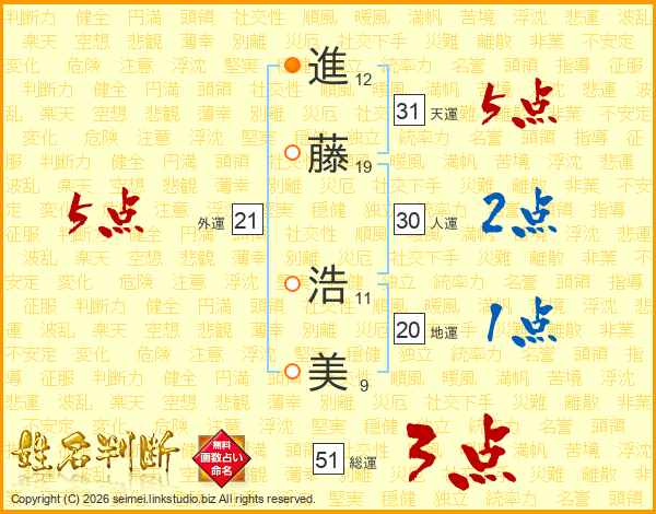 進藤浩美さんの外運は21画の5点!