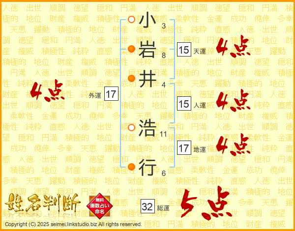小(3画)岩(8画)井(4画) 浩(11画)行(6画)