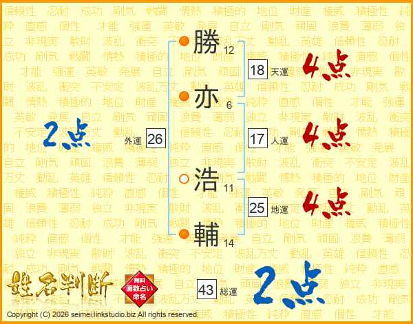 勝亦浩輔さんの総運は43画の2点!