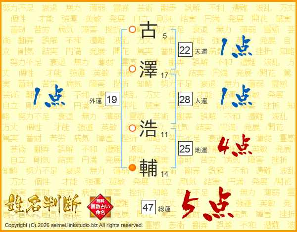 古澤浩輔さんの総運は47画の5点!