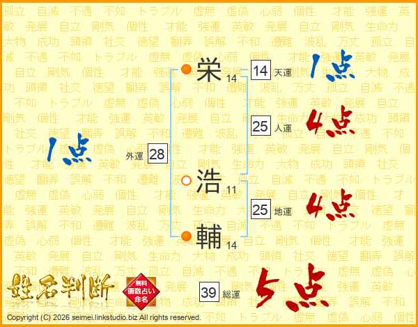 栄(14画) 浩(11画)輔(14画)
