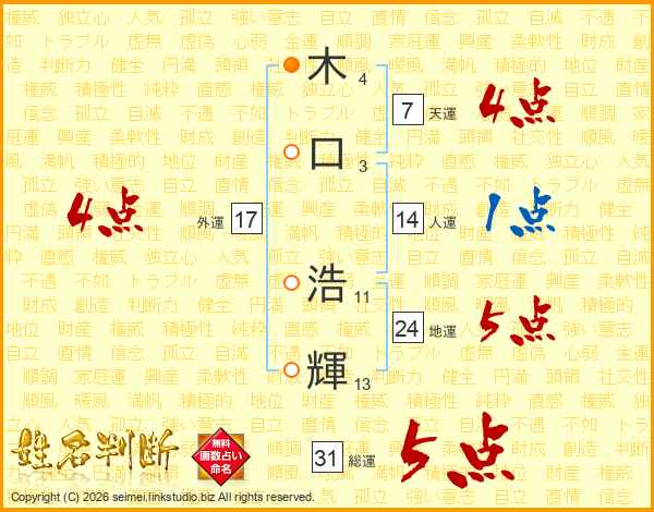 木口浩輝さんの総運は31画の5点!