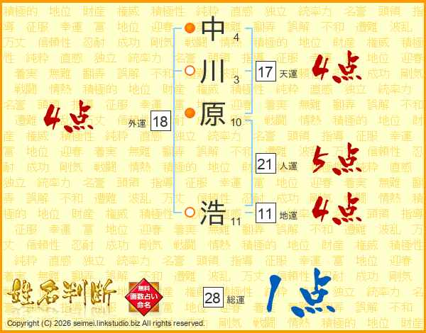 中川原浩さんの総運は28画の1点!