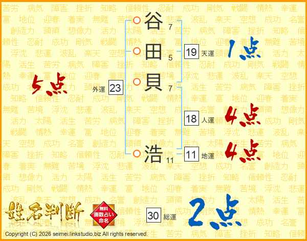 谷田貝浩さんの地運は11画の4点!