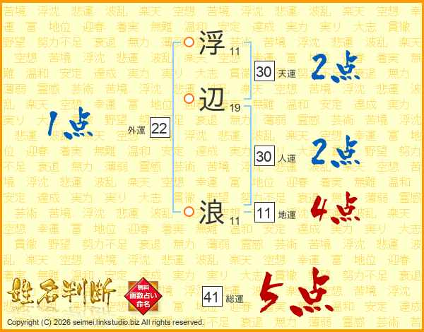 浮辺浪さんの総運は41画の5点!