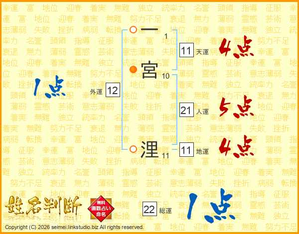 一宮浬さんの天運は11画の4点!
