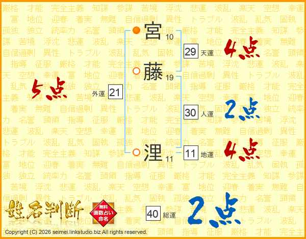 宮藤浬さんの総運は40画の2点!